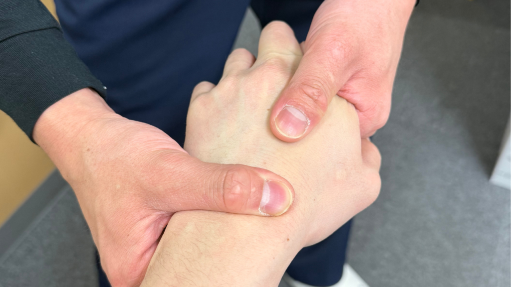 大前提として、まずはズレた手首や手の甲の骨を正しい位置に戻します。土台を元通りにすることで、アクチンとミオシンが再び動ける「環境」を整えます。