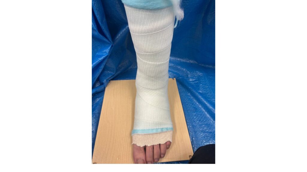 • ギプスの優位性: テーピングやサポーターでは不可能な、損傷部位を「短縮位で完全に不動化」することを実現します。これにより、修復途中の靭帯繊維が動きによって引き伸ばされることを防ぎ、強固で緩みのない靭帯へと治癒させることが可能になります。