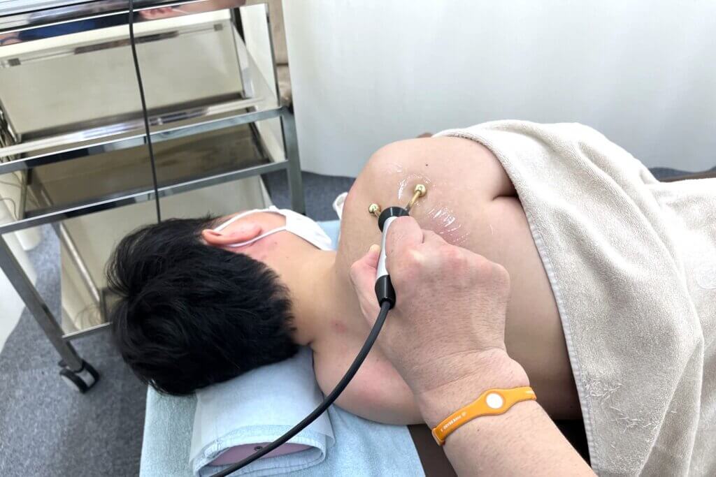 アキュスコープを受けた後は、指を固定していただきました。1か月後の大会に間に合うか不安でしたが、2週間ほどで本格的なリハビリに取り組めるまでに回復。定額制のおかげで、金銭的な負担も少なく助かっています。